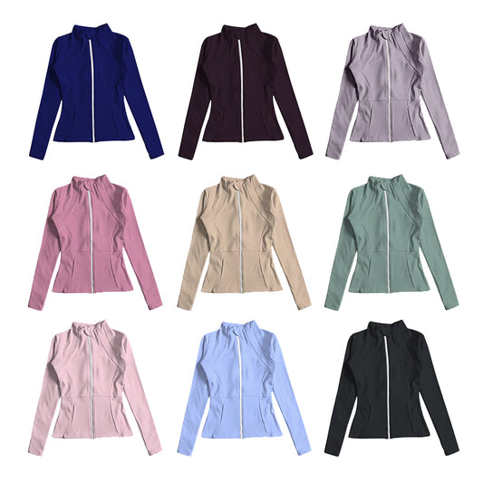 kids yoga light green zipper pockets GT0682 long sleeve top sweater girl top yoga clothes 202411 RTS