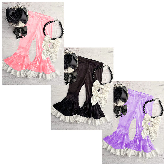 P0722 girl lace bell bottom purple velvet pants 202411 PREORDER
