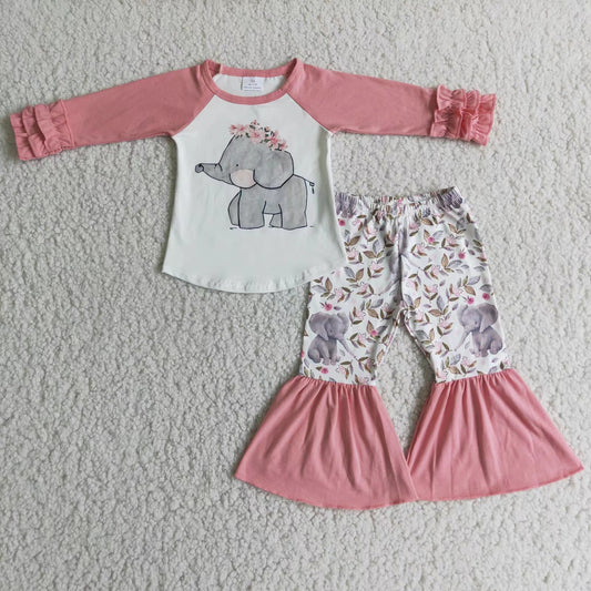 Promotion 6 A28-18 pink long sleeve elephont top bell bottom pants girl outfit 20230630