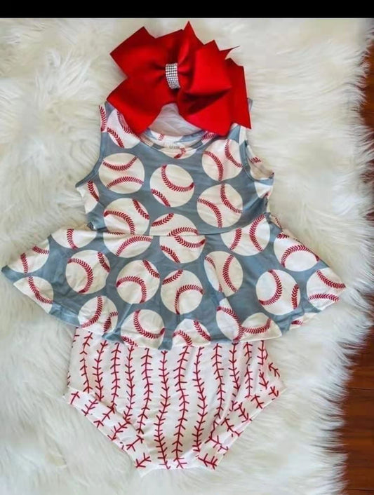 promotion RTS GBO0005 blue top baseball print girl sleeveless shorts outfits 20230412 RTS