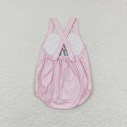SR0462 RTS Easter western bunny rabbit stripe pink embroidery long sleeves girl bubble romper 20231121