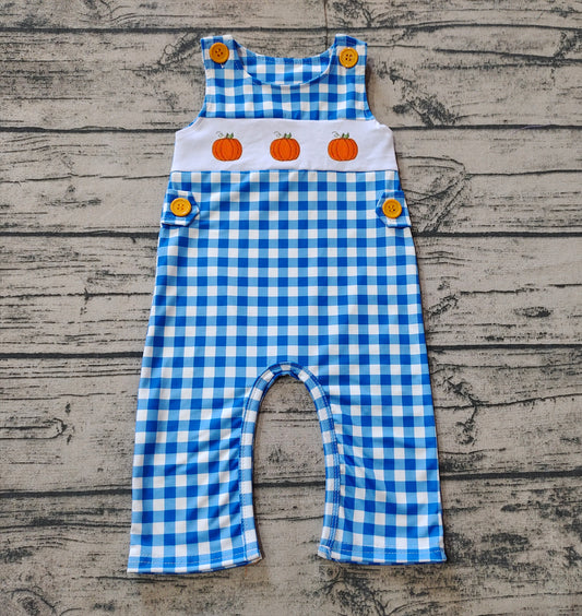 SR1949 embroidery boy plaid blue romper 202409 RTS