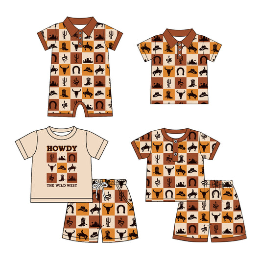 SR3094 western cow western boy kids summer romper 202505 preorder