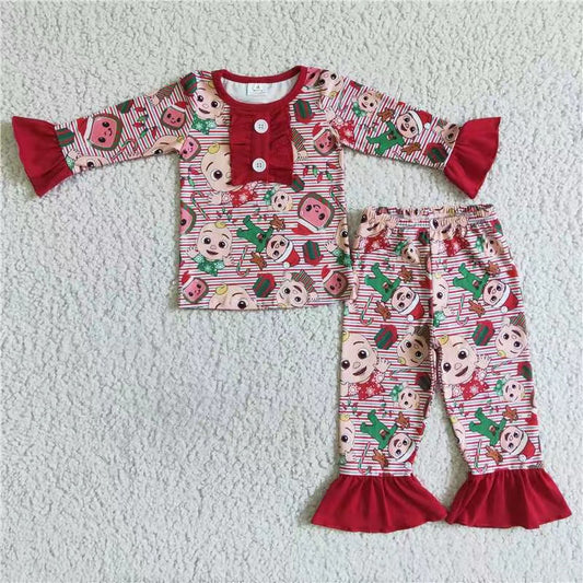 promotion 6 A6-29 christmas coco girl red stripe watermelon long sleeve pajamas girl outfit 202408 RTS
