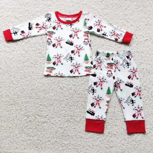 RTS Christmas boy green cartoon red white stripe long sleeve boy pajamas outfits 0711