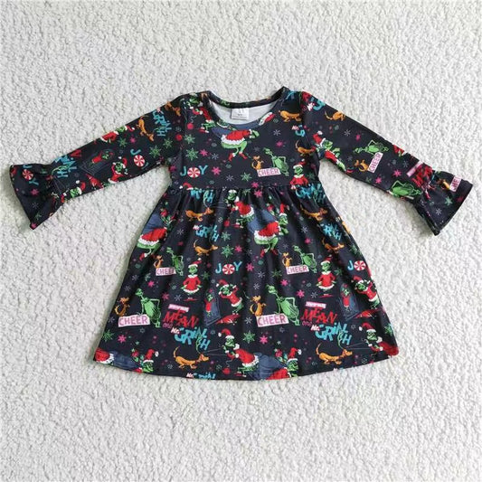 Promotion 6 A29-13 christmas black green cartoon long sleeve GIRL dress RTS 20230622