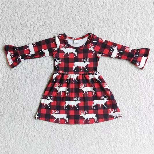 6 A30-11 Christmas red white plaid elk long sleeve dress