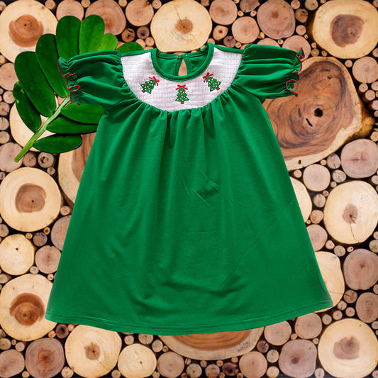 GSD0440-3xs-4xl-Christmas tree girl dress Smock embroidery cotton blue short sleeve girl dress 20230814