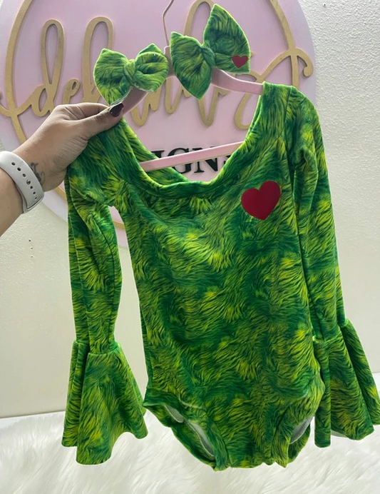 RTS halloween green grin Christmas flower short sleeve pants baby girl outfit 20230622