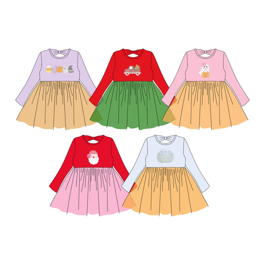 GSD2746 embroidery pumpkin girl dress 202508 RTS