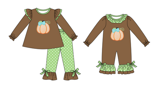 LR1163 halloween pumpkin girl romper 202406 preorder sibling