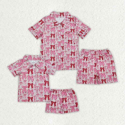 GSSO1717 adult bow valentines women pink pajamas 202501 RTS sibling