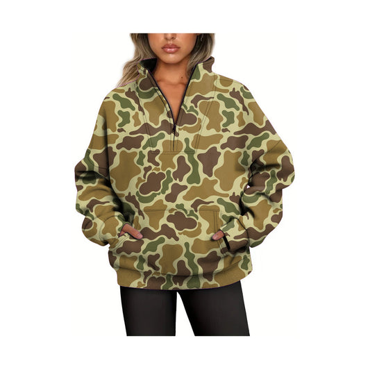 GT0828 adult woman camo zipper pollover tee top t-shirt fall winter clotehs 202410 preorder