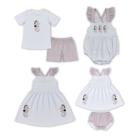 GBO0350 Embroidery sea horse bummies girl outfit 202405 RTS sibling