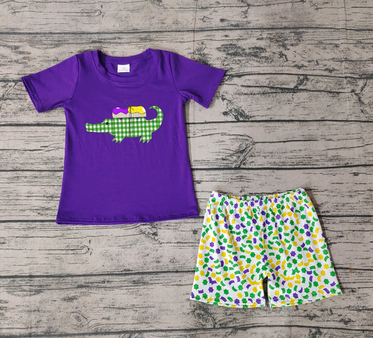 BSSO0311 dinosaur Mardi Gras short sleeve shorts boy summer outfit 20231130 RTS