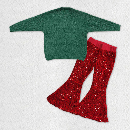 GLP1059 RTS long sleeve green sweater colorful red sequin girl outfit 20231121