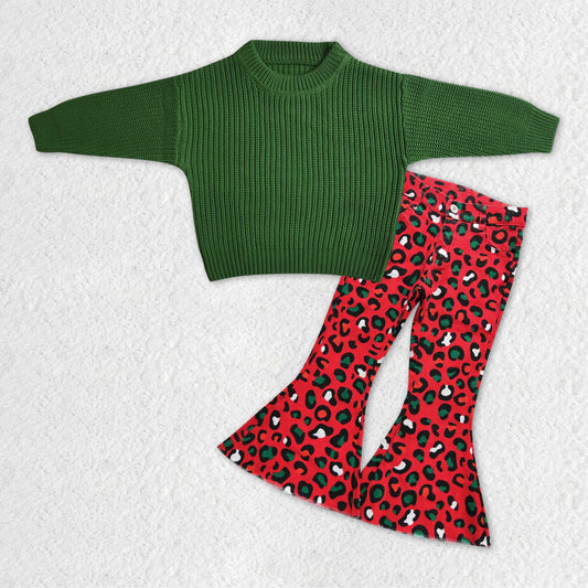 GLP1065 RTS long sleeve green sweater leopard jeans jeans girl outfit 20231121
