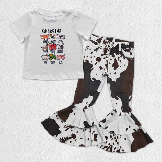 GSPO1005 animals brown cow RTS short sleeve denim jeans girl outfit 20231017