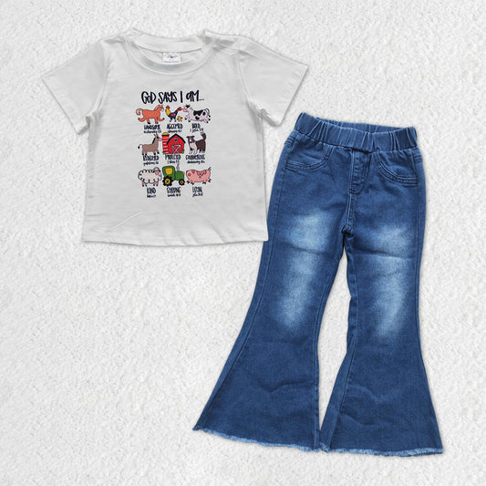 GSPO1007 western animals short sleeve denim jeans girl outfit RTS 20231017