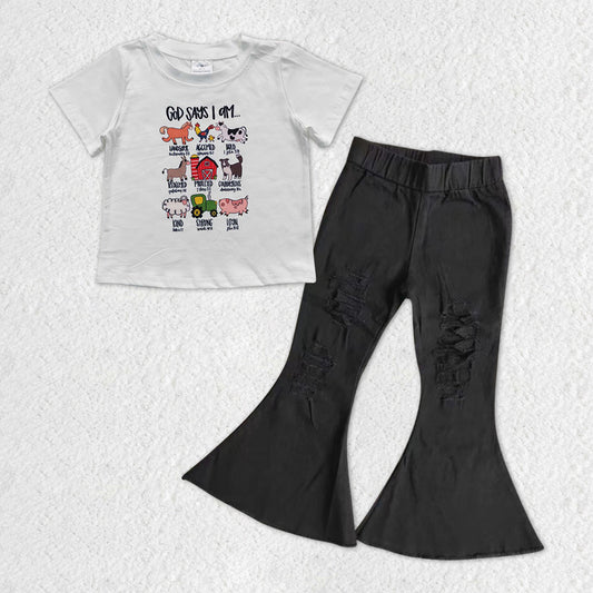 GSPO1008 western animals short sleeve denim black bleaching jeans girl outfit RTS 20231017