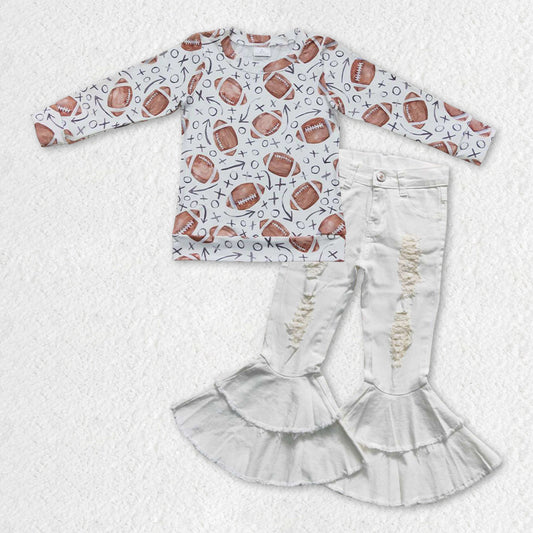 GLP0920 cow football long sleeve denim jeans girl outfit 20230928 RTS