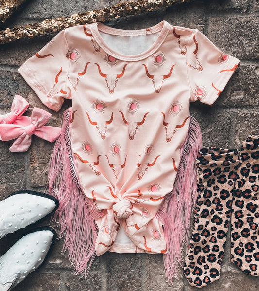 GSD0438 pink short tassel sleeve girl dress RTS 20230822