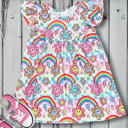 promotion RTS GSD0324 sun smile rainbow short sleeves girl dress 20230329