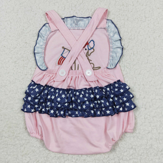 SR0332 Embroidery western cartoon 4th of July dog short sleeve kids girl Baby romper 20230506 RTS