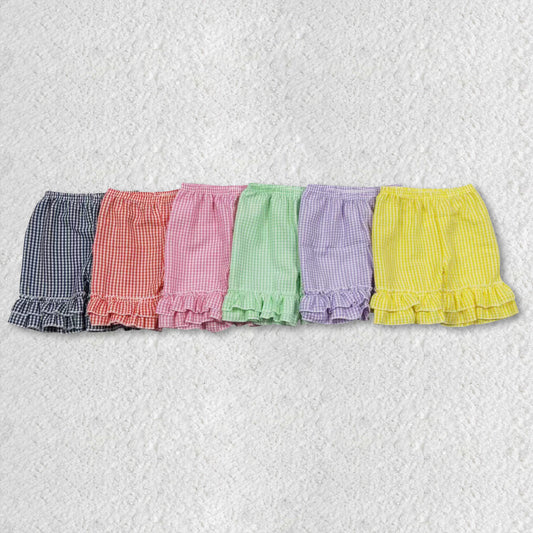 SS0063 girl seersucker ruffles pink summer shorts 20230325 RTS