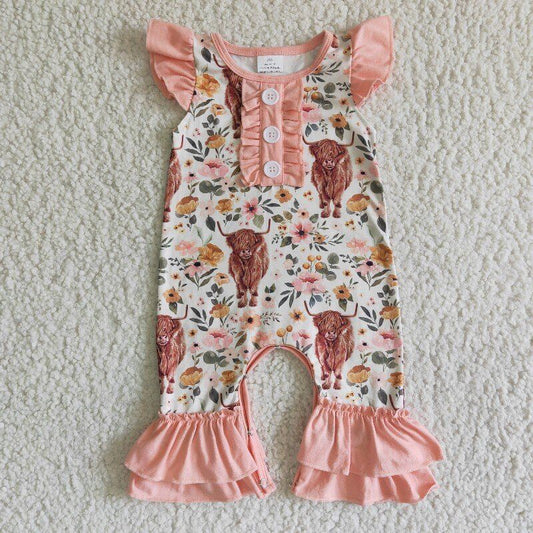SR0010 floral cow short sleeve girl romper RTS Free shipping order $100+