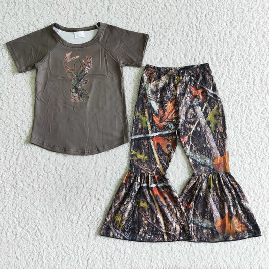 C6-6 camo leaf deer short sleeve bell bottom girl outfit 20231121 RTS
