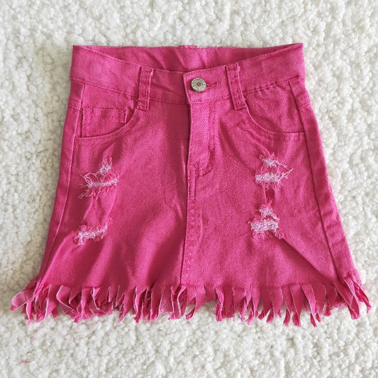 B7-3 girl button hotpink tassels ripped denim skirt 20230307 RTS