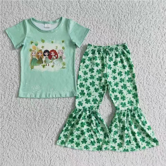 promotion B10-2 cartoon princess LUCKY clovers short sleeve girl outfit 20230323 RTS