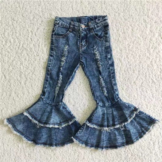 C1-13 Fashion girl dark blue double ruffles denim pants 202501 RTS