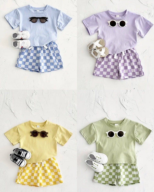 BSSO1469 pr checkerboard boy summer outfit 202504 RTS