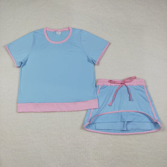 GSD3674 adult BLUE Solid color women pajamas SET OUTFIT 202603 RTS