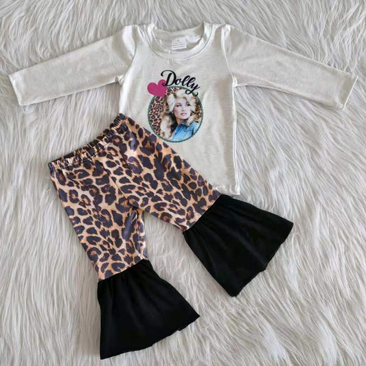 promotion 6 B8-37 cow flowers head long sleeves sunflower yellow bell bottom leopard pants outfit 202408