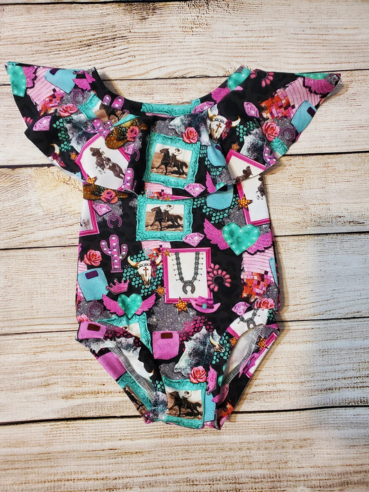 SR0219 western horse short sleeve girl romper 20230306 RTS
