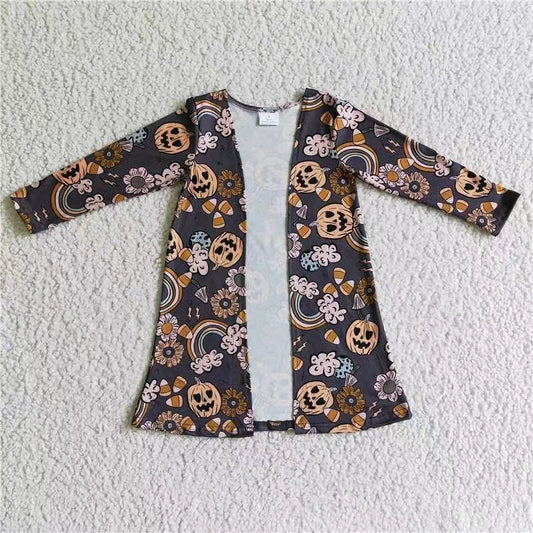 GT0044 kids halloween rainbow pumpkin black cardigan RTS 20230615