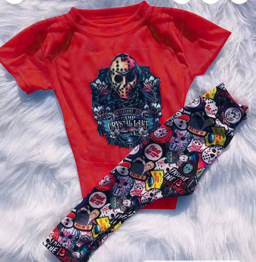 Promotion 202410 RTS red short sleeve halloween skull camp pants boy outfit