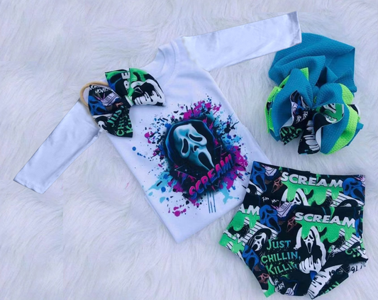 Promotion RTS LR0031 (choose headband below) skull white long sleeve halloween girl bummies outfit 0707