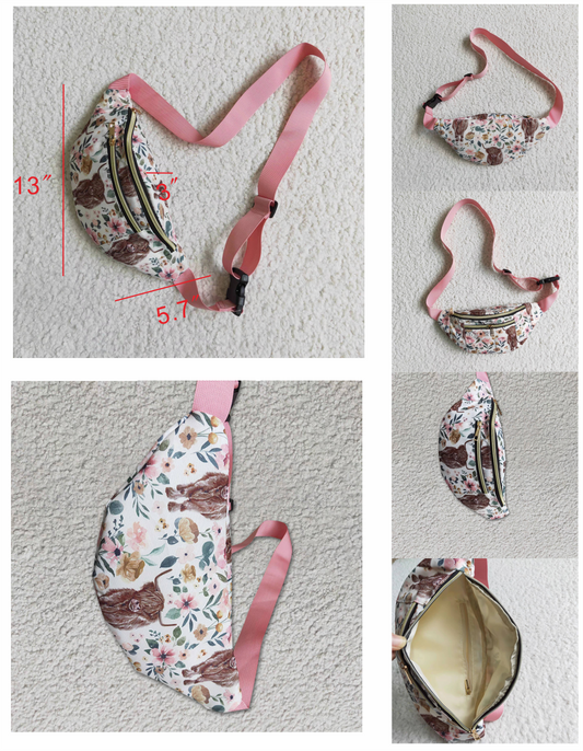 RTS the Fanny pack 13*5.7*3 inches Waist Bag pink cow floral bag 0708