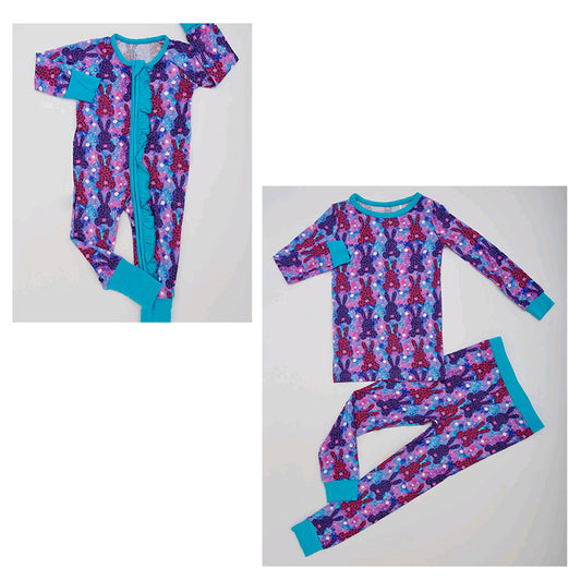 LR2174 Easter bunny purple western girl romper 202412 preorder sibling