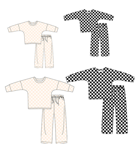 GLP2298组合 checkerboard black white girl outfit pajamas 202412 sibling set preorder