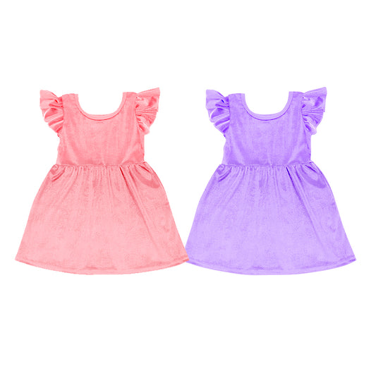 GSD1543 solid purple cotton nshort sleeves girl dress preorder 202411