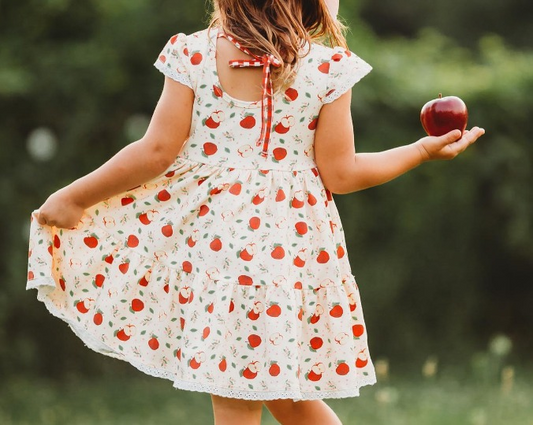 GSD1324 Back to school apple girl short sleeves girl dress preorder 202405