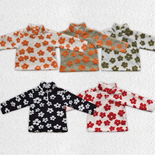 GT0264 Zipper plush style stand-up collar flower orange soft comfortable winter coat 20230913 RTS