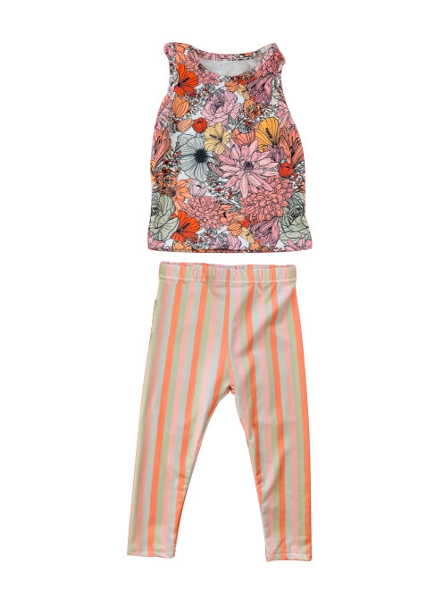 GSPO0779 preorder western flower stripe short sleeve brown pants girl outfit 20230704