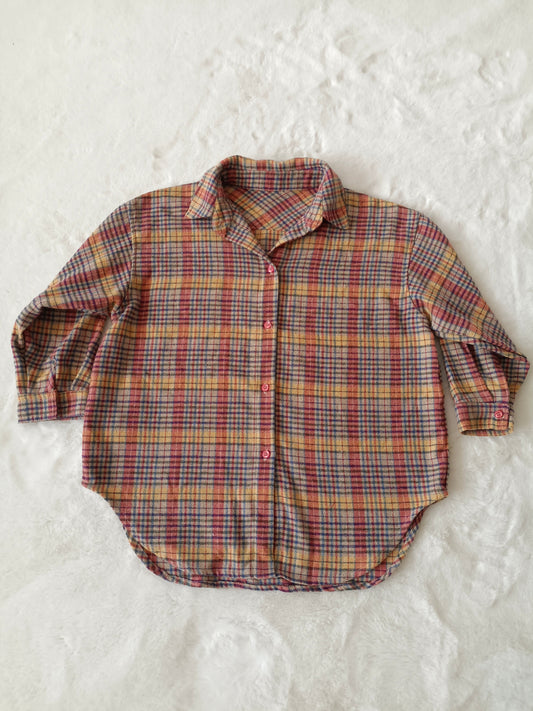 BT0242 brown green plaid long sleeve Cotton girl boy top shirt RTS 20230601