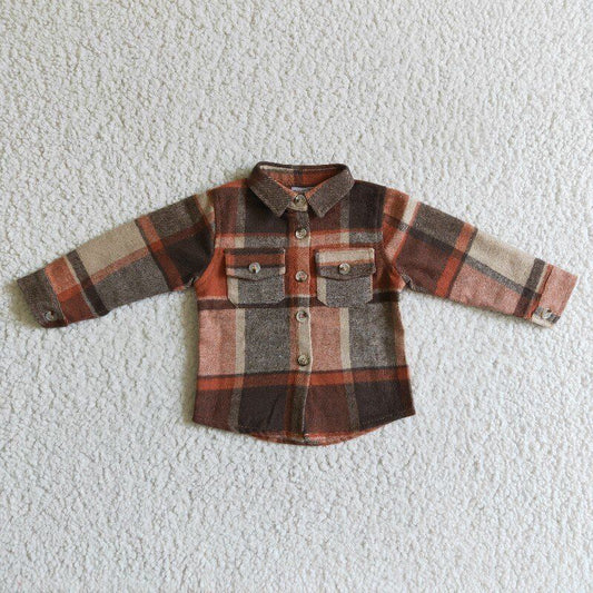 BT0062 RTS brown plaid long sleeve Cotton top boy top shirt 1029